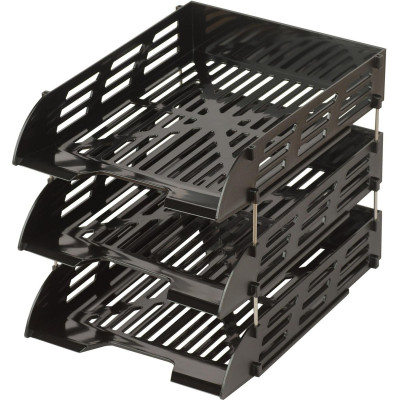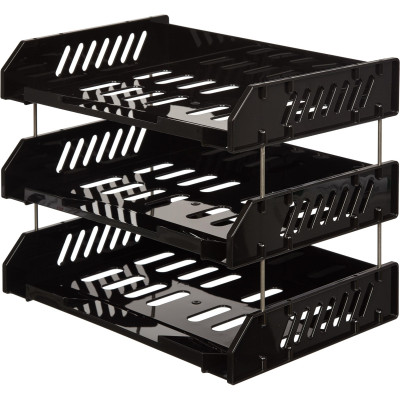 Лоток горизонтальный для бумаг Attache 3шт/наб на металл стерж черный