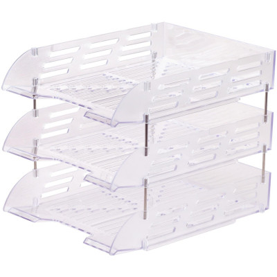 Лоток горизонтальный для бумаг Attache 3шт/наб на металл стерж прозрачный