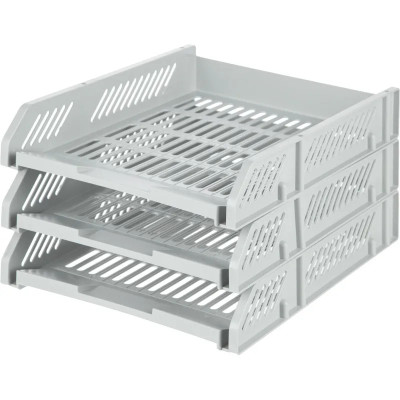 Лоток горизонтальный для бумаг Deli E9217Grey набор 3шт на металл.стерж сер