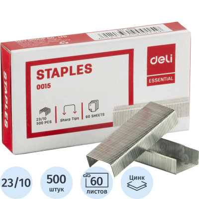 Скобы для степлера №23/10 Deli Е0015 оцинкованные 500 шт/уп