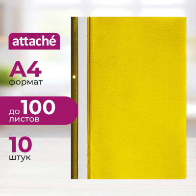 Скоросшиватель пластиковый Attache, А4, Элементари, желтый 10шт/уп