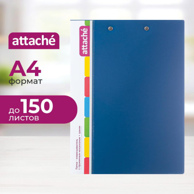 Скоросшиватель пластиковый с пружин.мех.+зажим Attache,0.7 мм, синий
