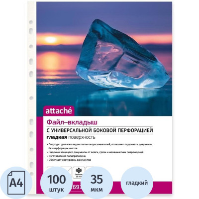 Файл-вкладыш А4, 35мкм Attache, гладкий, 100шт/уп