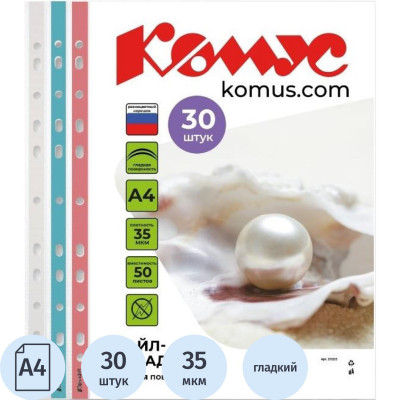 Файл-вкладыш А4 35 мкм Комус, 100 шт