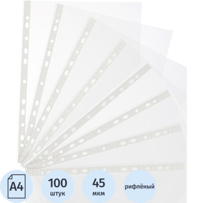 Файл-вкладыш А4, 45мкм, Attache, рифленый, 100шт/уп