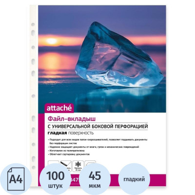 Файл-вкладыш Стандарт А4 30мкм Attache с перфорацией,100 шт