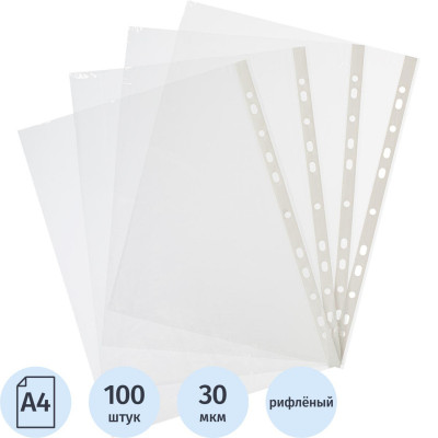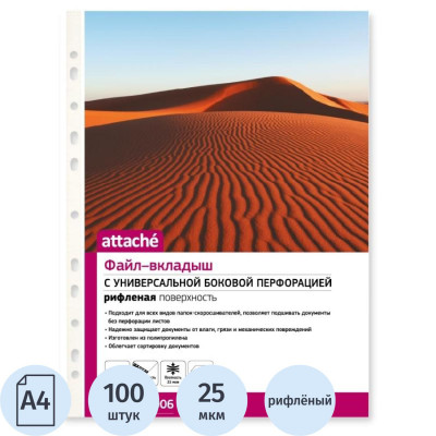Файл-вкладыш А4 Attache, Стандарт,30мкм с перф,100 шт., рифлен.пов