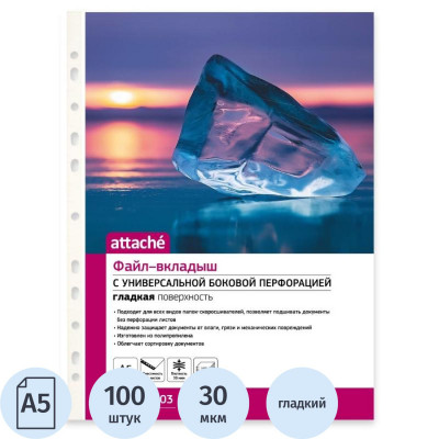 Файл-вкладыш Стандарт А4 30мкм Attache с перфорацией,100 шт