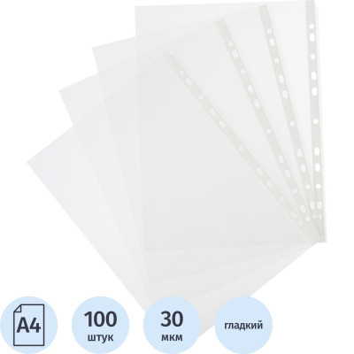 Файл-вкладыш перфорированная А4 100шт., гладкая Элементари 0,030 мм