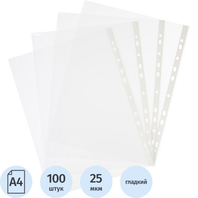 Файл-вкладыш А4 Attache,Стандарт ,25 мк м100шт./уп.с перф.Россия