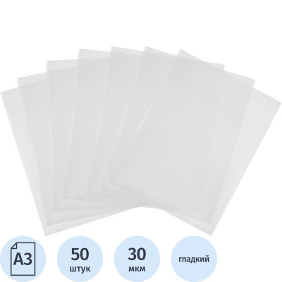 Файл-вкладыш Attache А3, 30 мкм прозрачный гладкий без перфорации 50 шт/ уп