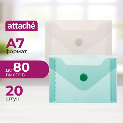 Папка-конверт на кнопке А7 105x74мм 180 мкм ассорти,Attache 20шт.уп