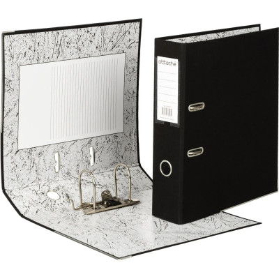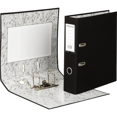 Папка-регистратор 75мм Attache А4, черная РР/бумага, мет уголок
