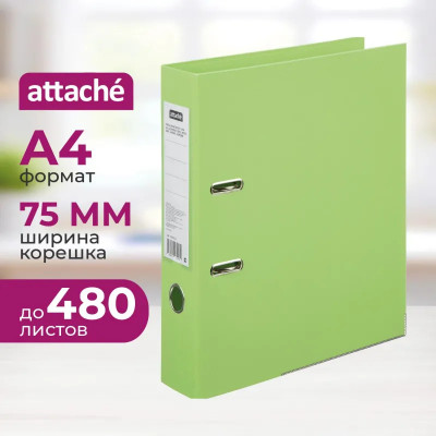 Папка-регистратор 75мм Attache салатовая ПБП2 метал кант карман корешок