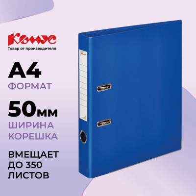 Папка-регистратор Комус Стандарт 50мм синяя, ПБП2, карм.кор., мет.уг