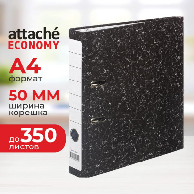 Папка-регистратор 50мм Attache Economy нов мрам А4 черн,бум/бум б/мет. угол