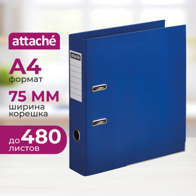 Папка-регистратор 75мм Attache, А4, синяя, ПБП2, метал. угол, карман.кор