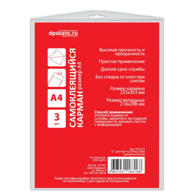 Самоклеящиеся карманы А4 223x303 мм 3 шт/уп