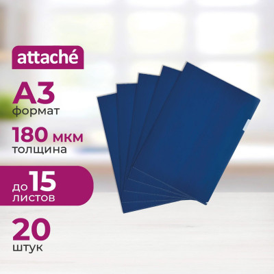 Папка уголок Attache формат А3 180мкм сини. в уп.20шт