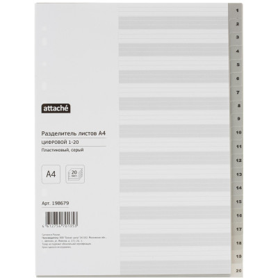 Разделитель листов из сер.пласт. с индексами Attache, А4, цифровой 1-20