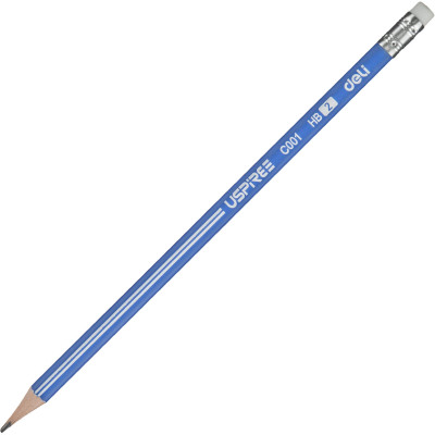 Карандаш чернографитный Deli Uspire HB трехгранный с ластиком, синий корпус
