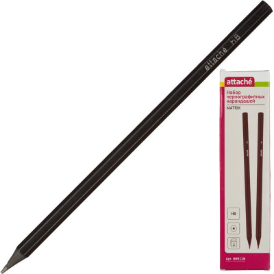 Карандаш чернографитный Attache плаcтик,б/ласт,HB,черн.корп,6шт/уп