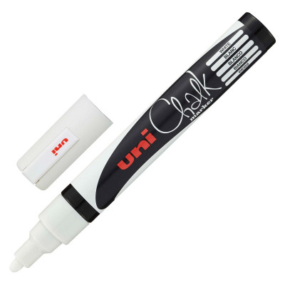 Маркер меловой UNI PWE-5M, белый, 1.8-2.5 мм.