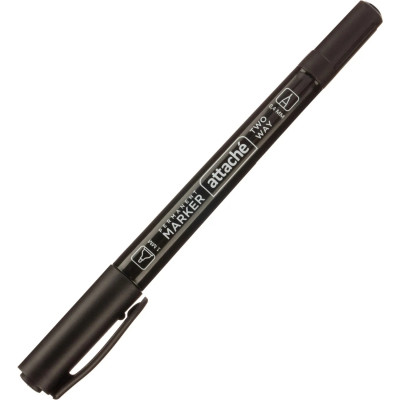 Маркер перманентный Attache 0,4/1мм черный, двусторонний, игольчатый/кругл