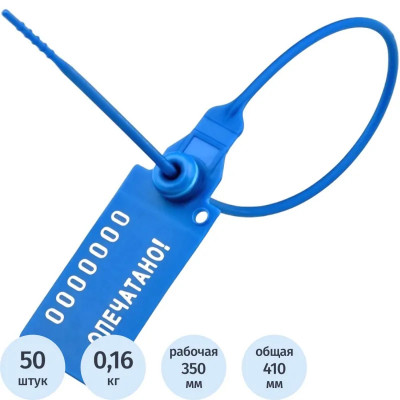Пломба пластиковая номерная, одноразовая, 235 мм,синие,500 шт/уп