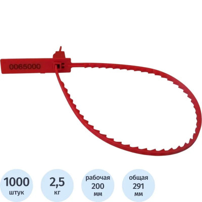 Пломба пластиковая номерная, одноразовая, 200мм, красные, узк. 1000 шт/уп