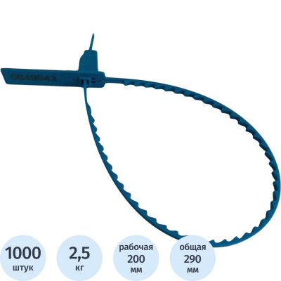 Пломба пластиковая номерная, одноразовая, 200 мм, синие, 1000 шт/уп