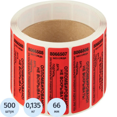 Пломба наклейка 66/22 без следа, Дата/Подпись, красная, 500 шт/уп