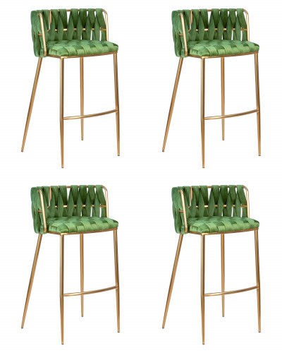 Набор 4 шт Стул барный DOBRIN EMMA GOLD, зеленый велюр (VF-08)