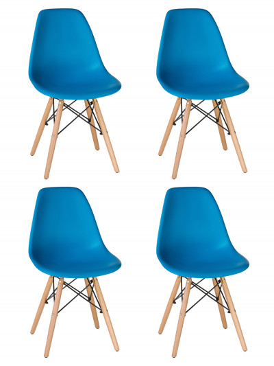 Набор 4 шт Стул обеденный DOBRIN DSW, ножки светлый бук, цвет морской волны (...