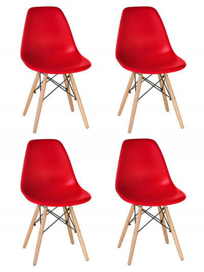 Набор 4 шт Стул обеденный DOBRIN DSW, ножки светлый бук, цвет красный (R-02)