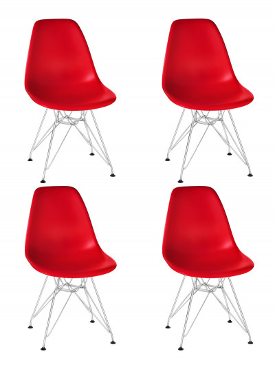 Набор 4 шт Стул обеденный DOBRIN DSR, ножки хром, цвет красный (R-02)