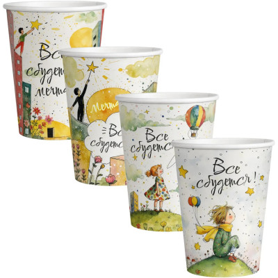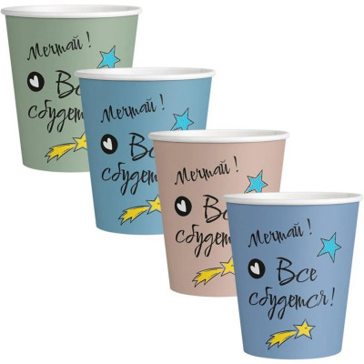 Стакан одноразовый бум. 1-сл Все сбудется mix 350 мл d-90 мм 50 шт/уп