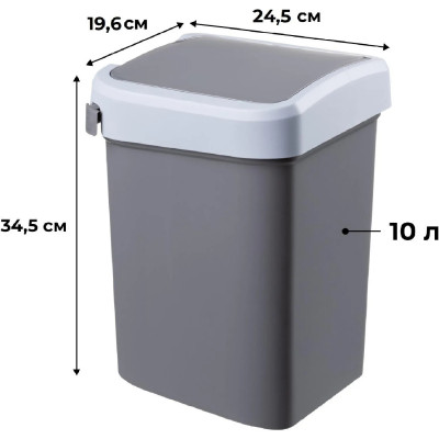 Контейнер для мусора пласт 10л прям сер с крыш-маят 196х570х480мм_434214711