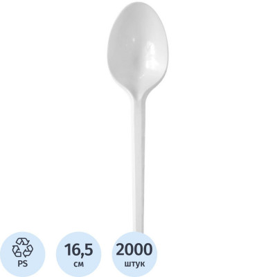 Ложка одноразовая столовая 165мм, ПС, белая, 2800шт/кор