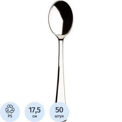 Ложка одноразовая столовая 175мм, металлизированная, ПС 50 шт/уп