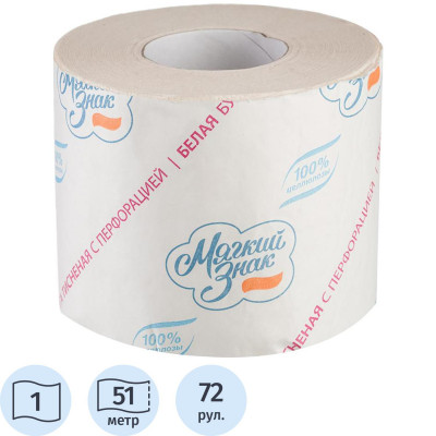 Бумага туалетная 1-сл.Мягкий знак белая с тисн.51м c28 72рул./уп.