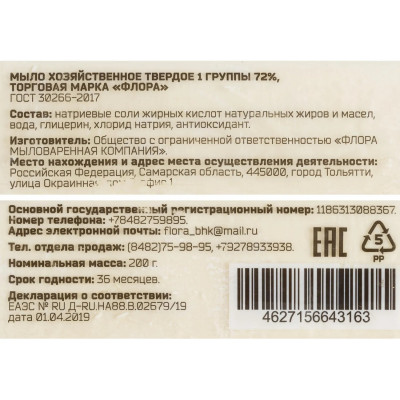 Мыло хозяйственное твёрдое 72% в цв уп 200 гр