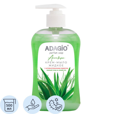 Крем-мыло жидкое Адажио перл с антибак эффек 500мл Алоэ Вера с дозатором
