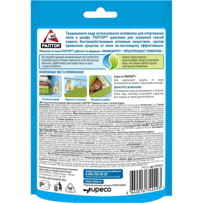 Средство от насекомых РАПТОР Мешочек от моли с запахом кедра 1шт 20гр