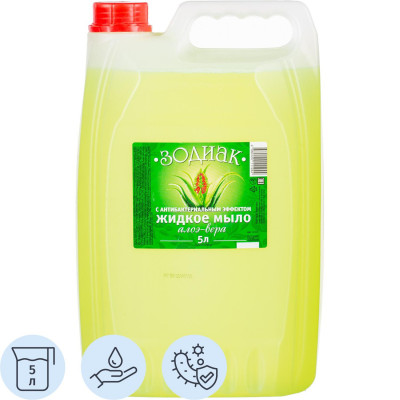 Мыло жидкое ЗОДИАК 5л Алоэ-Вера Антибактериальное