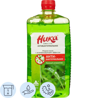 Мыло жидкое ПРОФ с дез-эфф Ника/Ника-Свежесть антибактериальное, 1л_ПЭТ