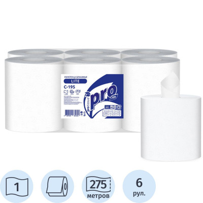 Полотенца бумажные д/дисп Protissue ЦВ 1сл 6рул по 275м С195