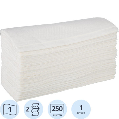 Полотенца бумажные Z 1сл 250л 23х21,6см 100% целлюлоза белые