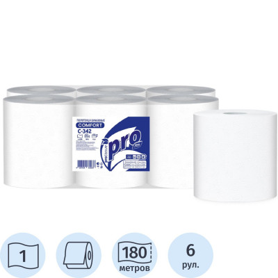 Полотенца бумажные д/дисп. Protissue H1 1сл 180м 6рул/уп C342