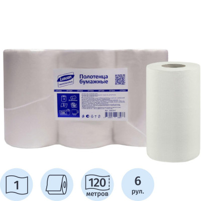 Полотенца бумажные д/дисп Luscan Prof Optima ЦВ 1 слбелцел 120м 6рул/уп
